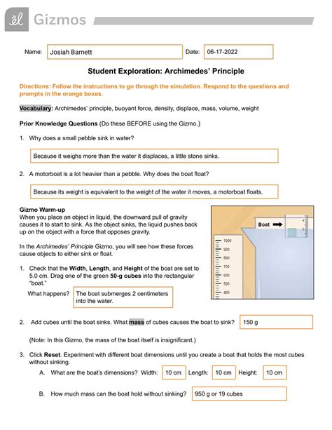 Read Online Student exploration archimedes principle answer key Doc